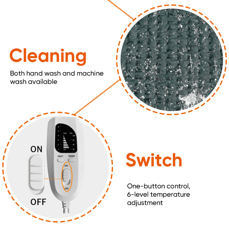 Fabric: Made of premium fleece blanket fabric, this heating pad feels soft and comfortable against the skin. The high-quality material ensures warmth retention while maintaining breathability for long-lasting comfort.